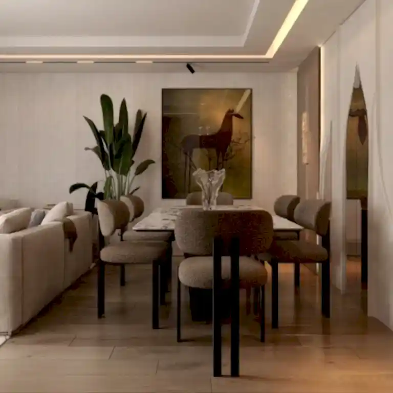 Her alan, fonksiyonelliği ön planda tutan bir anlayışla planlandı. Doğal dokular, dengeli renk geçişleri ve özgün mobilya seçimleri, mekânın kimliğini güçlendirdi. Aydınlatma tasarımıyla da iç mekânın derinliği ve zarafeti vurgulandı.