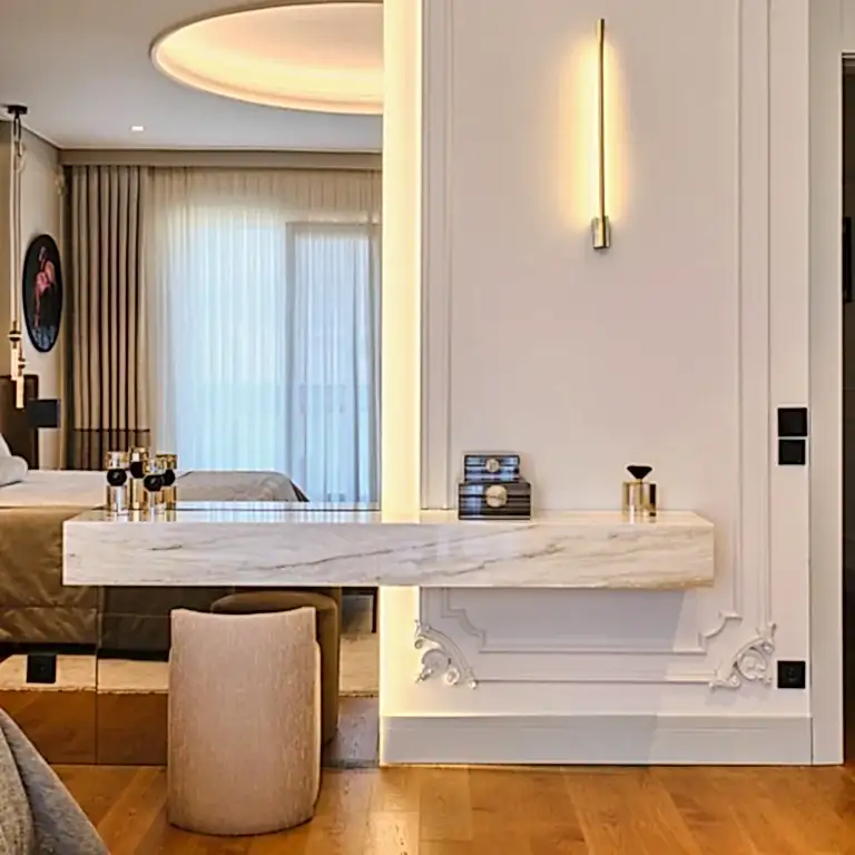 Develi Mimarlık olarak, Tema İstanbul 2 Villa Projesi’nde çağdaş yaşamın tüm ihtiyaçlarını karşılayan bir iç mimari anlayışı benimsedik. Proje genelinde modern çizgiler, doğal dokular ve işlevsel detaylar bir araya gelerek ferah ve huzurlu bir yaşam alanı oluşturuyor.